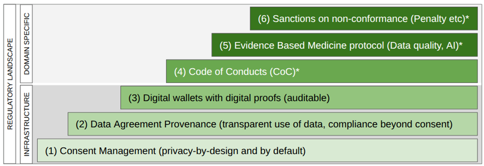 Figure 1: Six levels of trust in a health dataspace, with robust governance in all layers of the stack